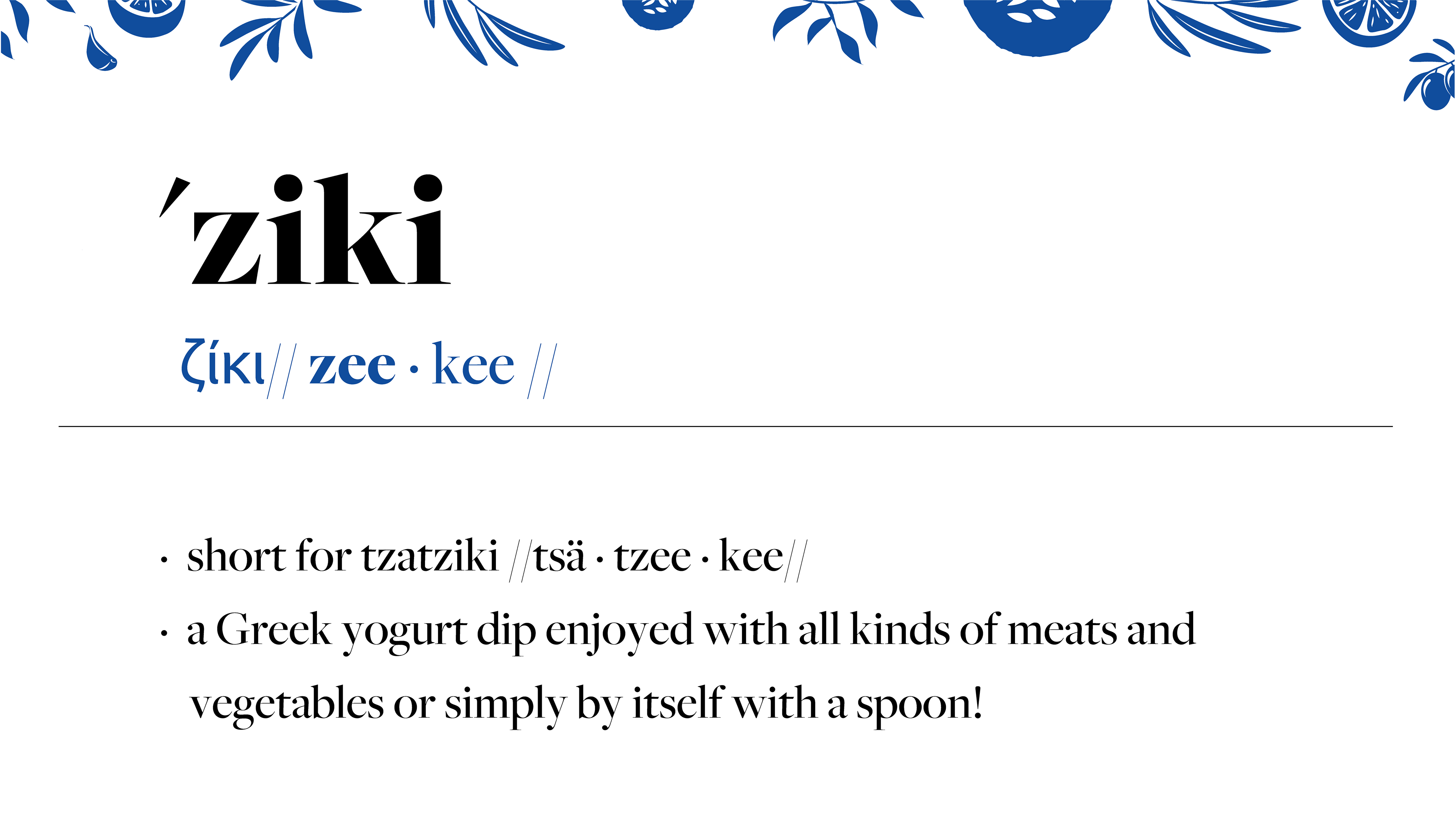 packaging, presentation, & marketing for 'ziki, greek yogurt dip